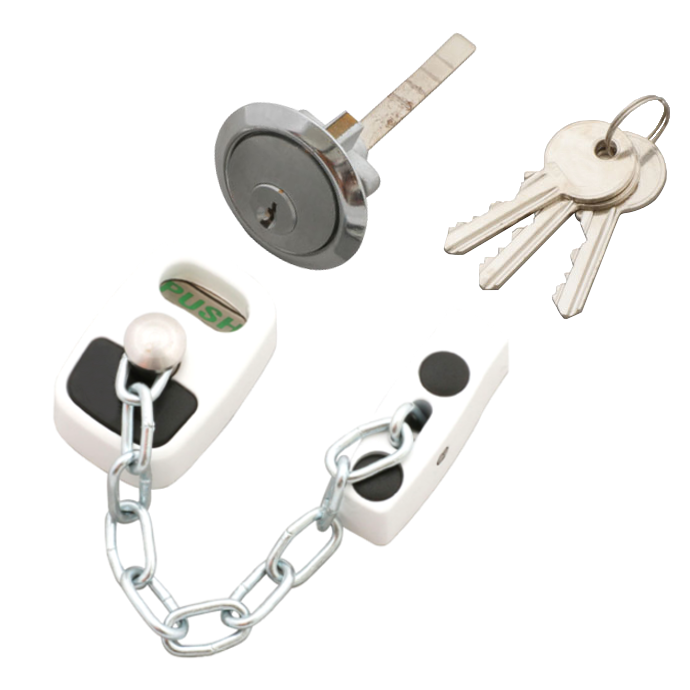 This Asec Door Chain with Cylinder is an innovative take on the traditional door chain design, featuring external key release and internal chain access. The chain body uses a simple push in engagement with a standard external rim cylinder which enables the chain to be disengaged externally with a key in emergency scenarios (ideal for people such as carers to gain access while the chain is on the door) and it can also be easily released using a push button. This particular model is supplied complete with a compatible external cylinder.