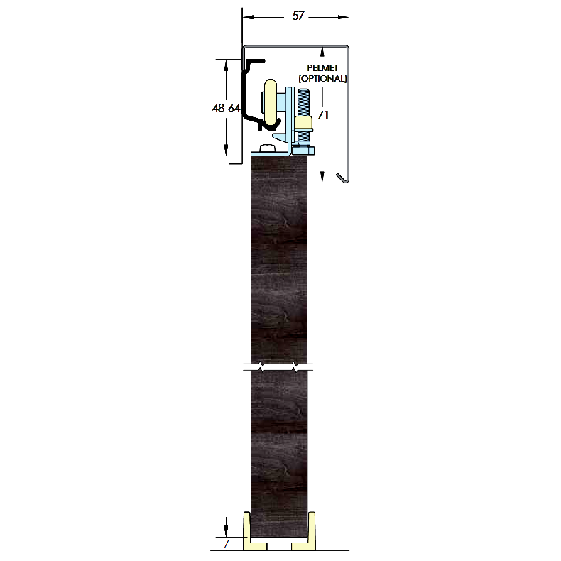 The Asec Sliding Sprintline 30 is a popular gear system designed for residential interior top hung sliding panel doors, suitable for a single panel. Featuring a side fixed aluminium track with optional white powder coated pelmet to conceal the track and hangers, this system has a neat and tidy finish. It is easy to install and can be adjusted using the adjustment slot and hanger nut assembly.