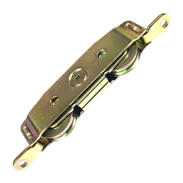 Tandem patio roller which is suitable for use on both timber & UPVC profiles and can carry a load per roller of 94Kg. This product has a diameter of 32mm, tandem wheels are set into a pressed steel carriage and incorporates height adjustment screws.