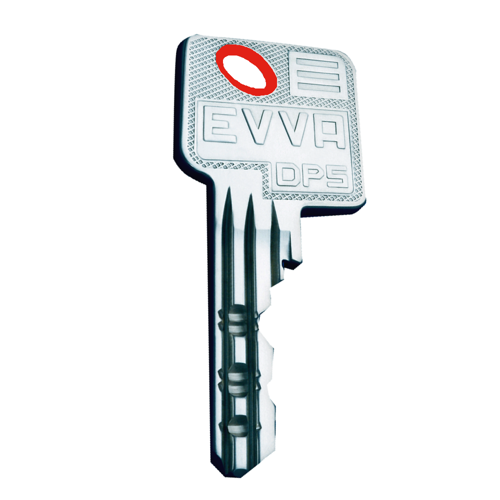 Coloured Insert for keyring hole in Evva Key Bows