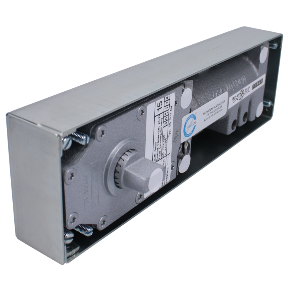 The Geze TS500 NV floor spring is a compact floor spring which has been designed for smaller swing and double action doors with a maximum leaf width of 1100mm and weight of 150kg. With an adjustable closing force of sizes 1 to 4, this door closer also features fully adjustable end stop and closing speed, all adjustments can be made easily from above.