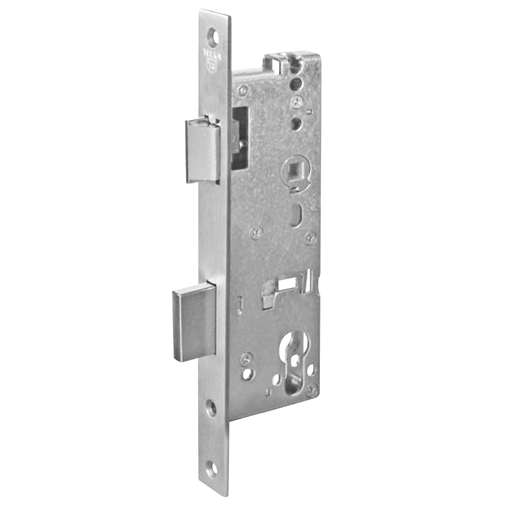 The WILKA 1438 Lever Operated Latch & Deadbolt Mortice Sashlock has 92mm centres, 25mm or 30mm or 35mm or 40mm or 45mm backset and has 24mm faceplate width. It is suitable for use on metal frame doors, is EN12209 certified, has a 20mm bolt throw and is fully zinc plated. HandingThe latch can be reversed by pushing up the latch hold cam (located on the side of the lockcase) with a flat bladed screwdriver. Remove the latch, reverse it, and return it to the case. You should hear a click as it engages. OperationLocking Method – Sash 2. Standard sashlock operation with the deadbolt operated by the cylinder and the latchbolt operated by the handle or cylinder.