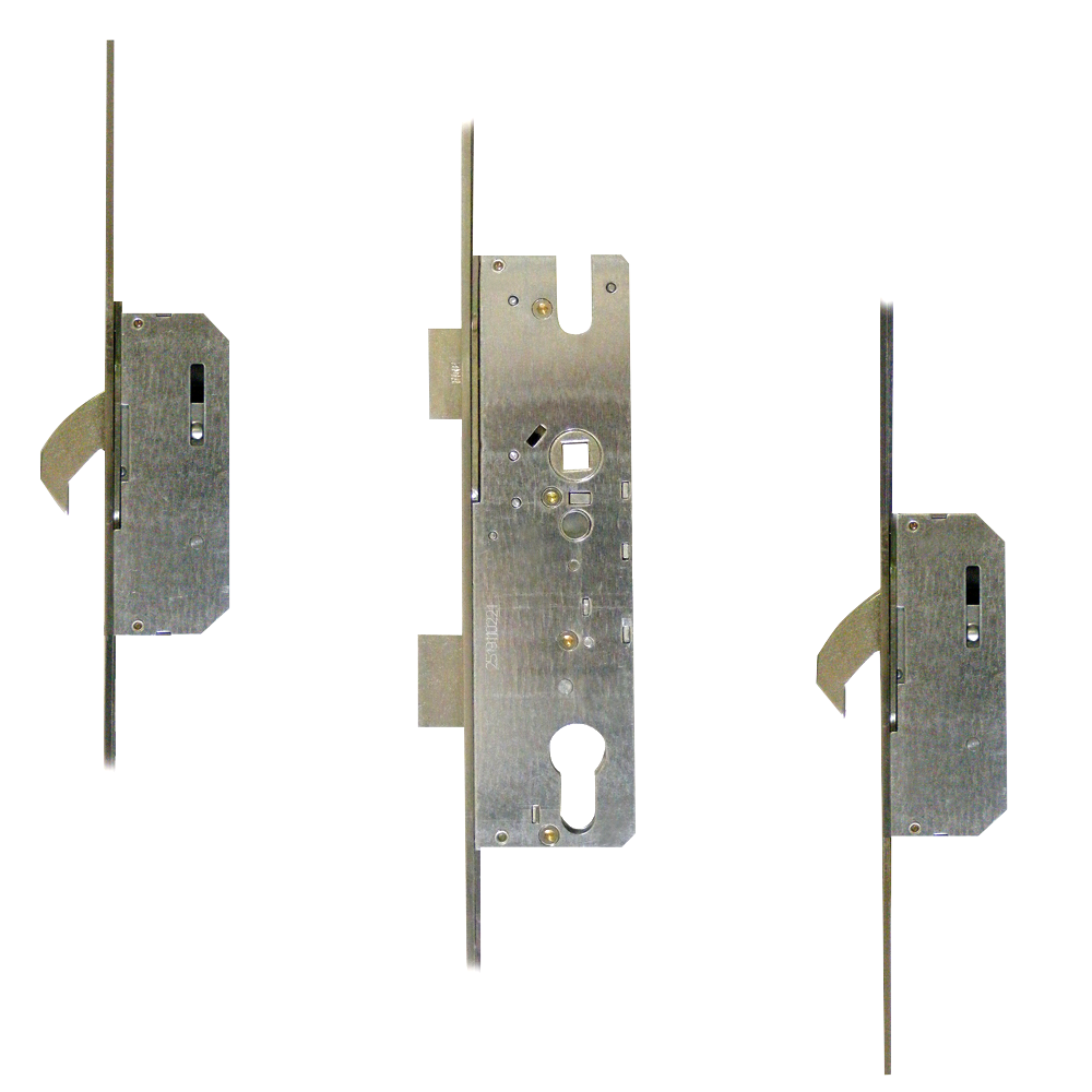 Lever operated latch & deadbolt multipoint lock system by Winkhaus with 92mm centres, a split spindle, 2 hooks and a choice of faceplate and backset sizes.